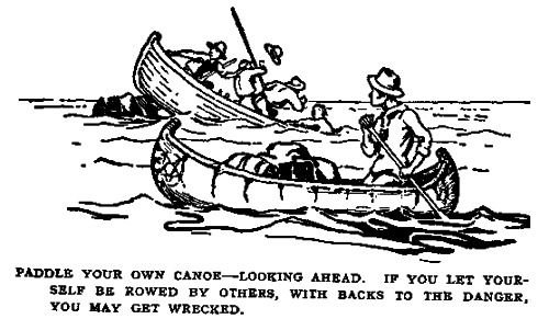 Triết lý Hướng Đạo nhấn mạnh mỗi người phải tự quyết lấy cuộc đời mình. Đó là tư tưởng chủ đạo mà Sir/Lord Baden Powell, nhà sáng lập phong trào Scouting, muốn nhắn gởi các Hướng Đạo sinh khi đủ 18 tuổi bước vào đời . Triết lý này được thể hiện trong quyển sách Rovering to Success (Đường thành công) [5] mà ông viết dành cho lứa tuổi này trong Hướng Đạo (Rover-Tráng sinh). Hình ảnh mang tính biểu tượng được ông sử dụng là Paddle your own canoe - Tự chèo lấy thuyền ta. Trước chông gai giông bão, mỗi người phải tự tay chèo lái con thuyền cuộc đời mình, tự chịu trách nhiệm, chứ không trông chờ vào ai khác.